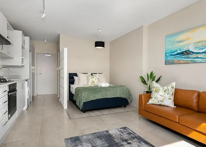Als u in Breeze Of The Sea Apartment Kaapstad van 30 m^2 verblijft, kunt u het Strand van Bloubergstrand bereiken, gelegen op ongeveer 3 km afstand. Het is gelegen binnen 30 minuten met de auto van Woodstock trainstation en op circa 10 minuten lopen van Merlot busstation.